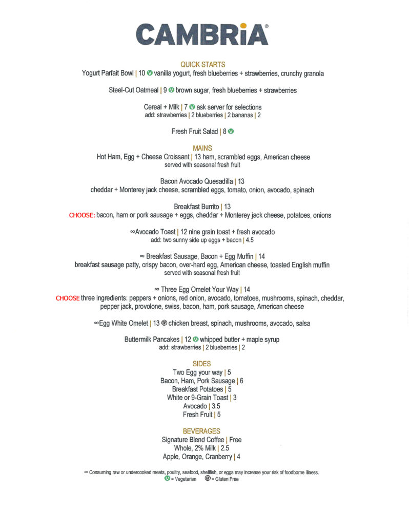 Breakfast: 6–9 am | Monday–Friday and 7–10 am | Saturday–Sunday